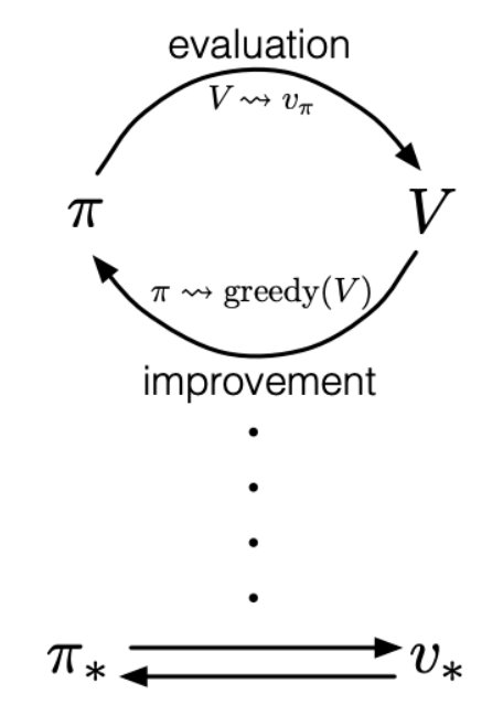 Almost all of Reinforcement Learning can be described as the policy always being improved with respect to the value function, and the value function always being driven toward the value function for the policy.