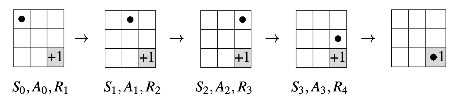 \[ G_{t} = r_{t+1} + \gamma G_{t+1} \]
