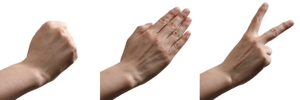 - \(A_{1,2,3}\) – You can choose between Rock, Paper, or Scissors.